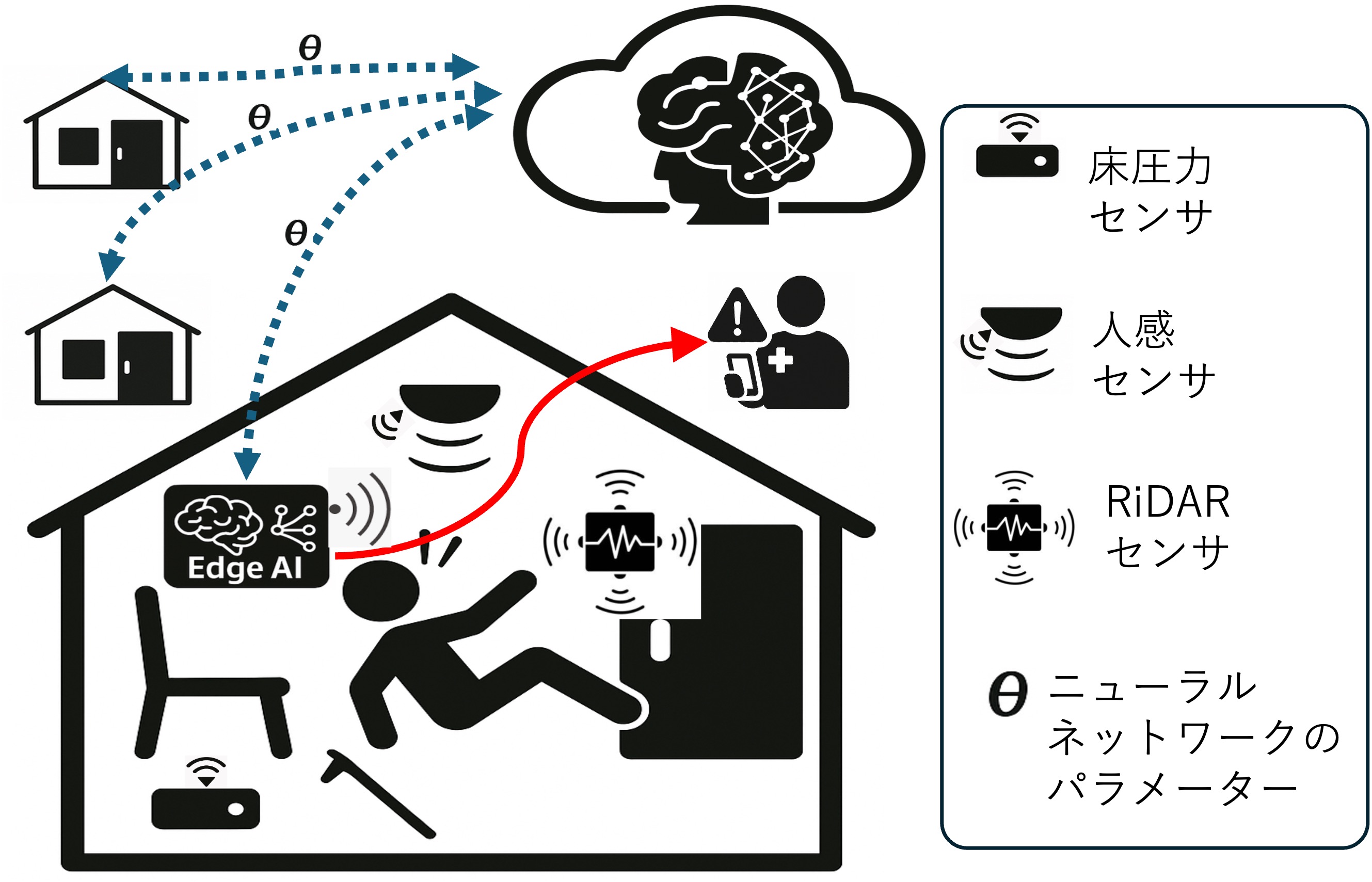 Novelty:異種センサ(2D LiDAR、マイクロ波、人感、圧力など)を共通の意味表現へ写像し、欠損・非IID・プライバシー制約に強い学習を実現する。